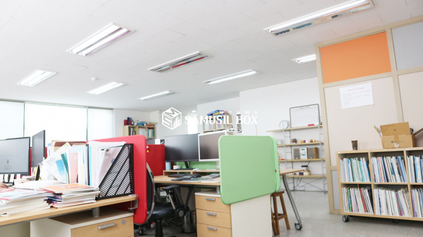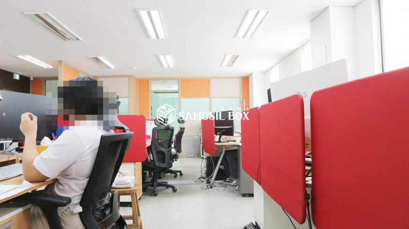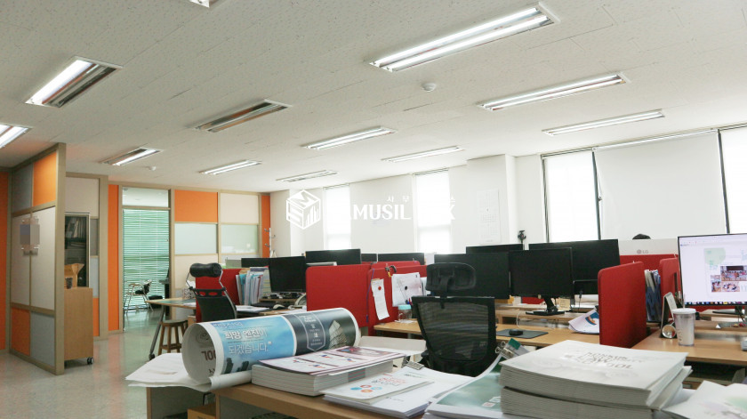 전면 유리건물이라 사무실내부 채광이 아주 좋고 밝은 사무실공간