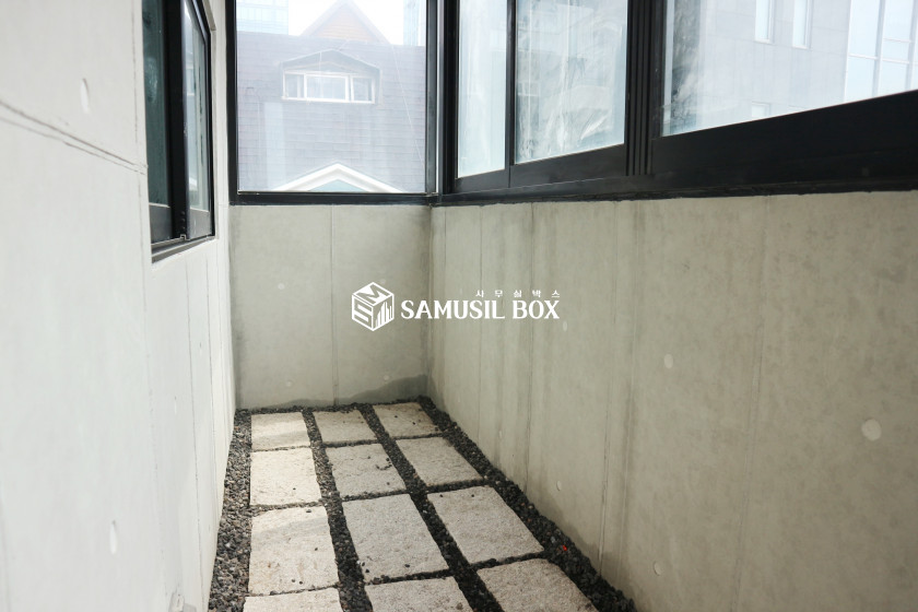 애폭시 바닥 + 노출천정 + 라인조명 + 베란다겸창고