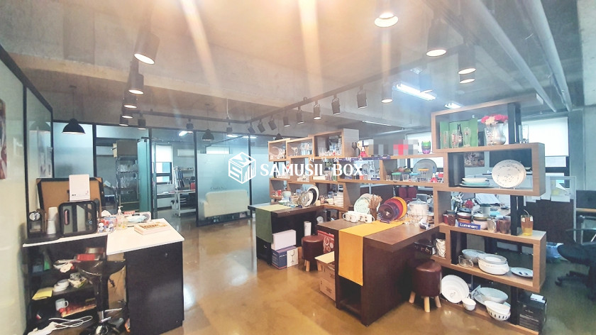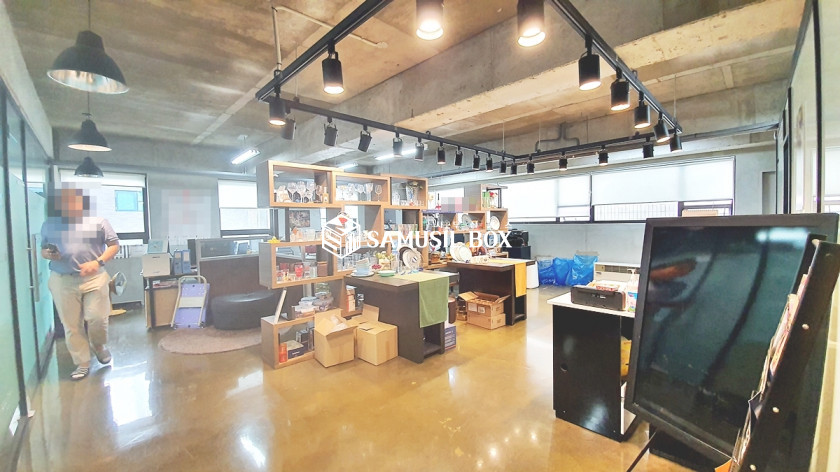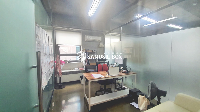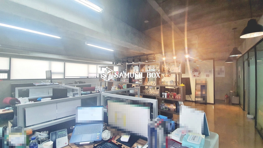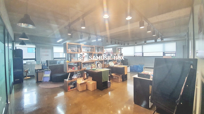 내부천정이 높은편으로 개방감 좋으며 라인조명등 심플한 느낌의 사무실공간