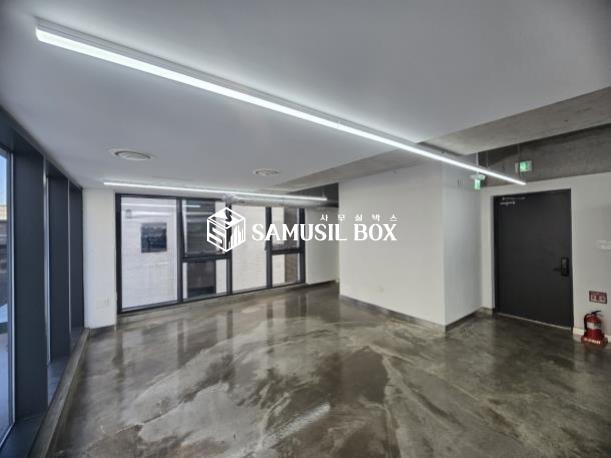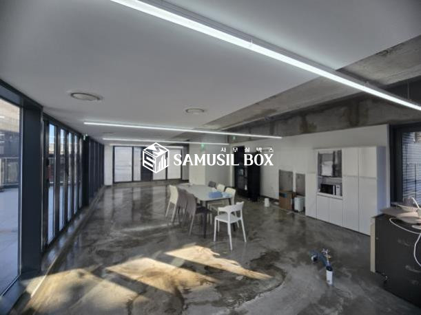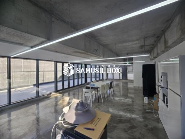 에폭시 바닥 + 세미 노출 스타일 + 창이 커서 답답하지 않는 전면 유리 + 라인조명 + 탕비실 설치~~~!!!