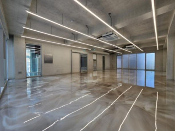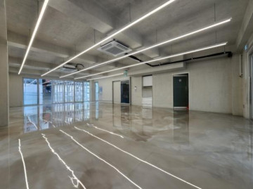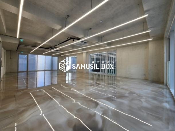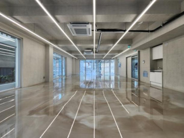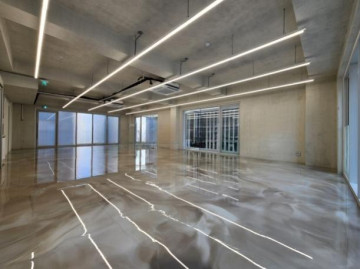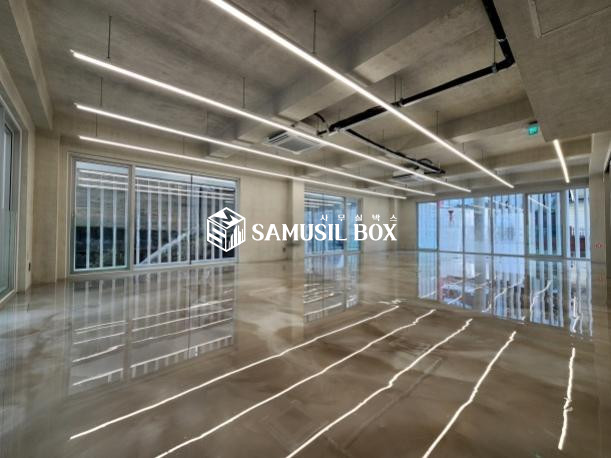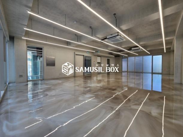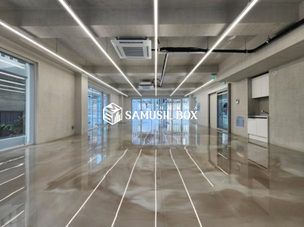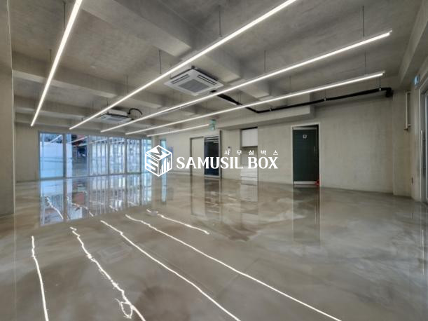 노출스타일 내부 인테리어 ( 에폭시바닥 + 노출천정 + 천정형 냉난방기 + 라인조명 + 씽크대 )